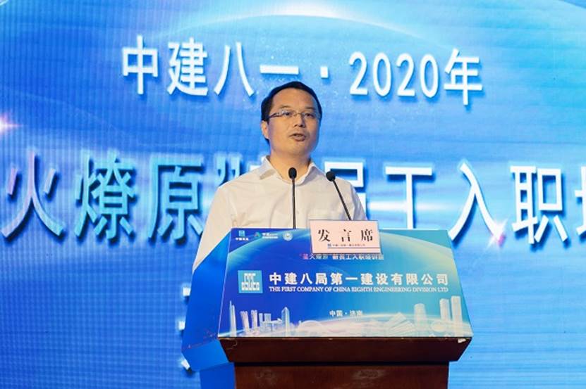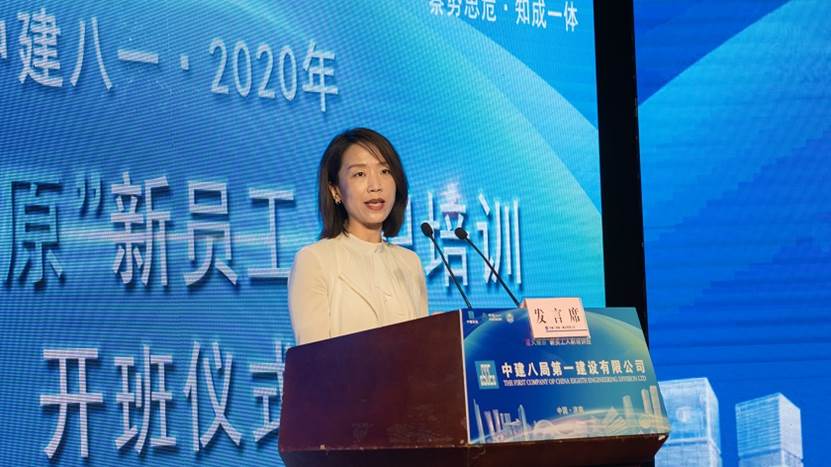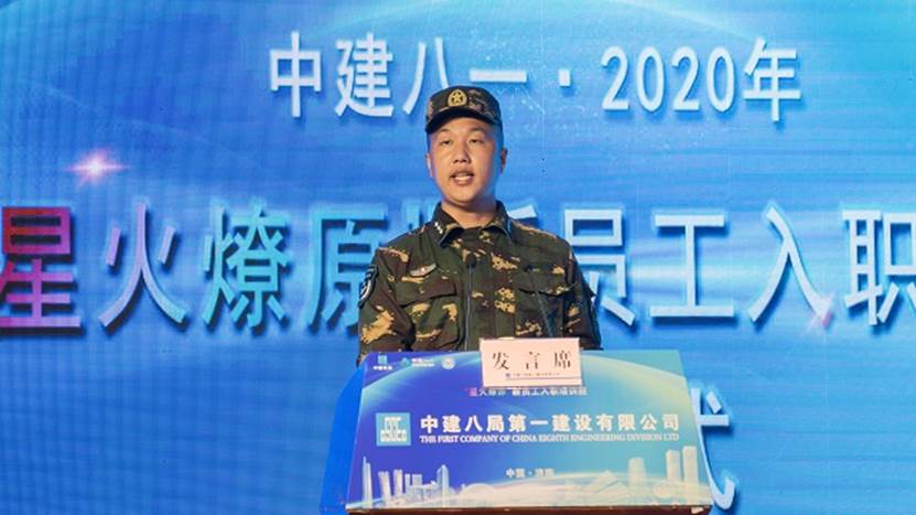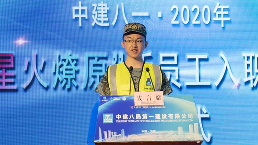 2020屆新員工黃成作為代表發言:“希望在中建八局如鳳凰沐火重生,追隨前輩的身影,成為召之即來,來之能戰,戰之必勝的八局鐵軍!”最后,新員工們齊唱中建司歌在雄壯嘹亮的歌聲下“星火燎原”培訓班正式開班!