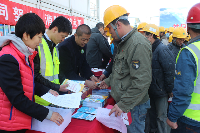 活動中,昌平區結防所預防科科員楊震對結核病的傳染源、傳播途徑、預防和治療等方面進行講解,并與其他參會人員一起給工人們發放防治結核病宣傳頁,為工人們進行免費的現場胸片檢查和義診。