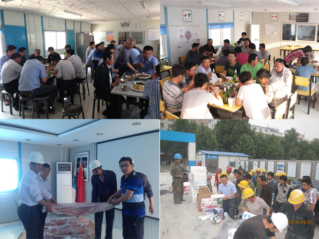 “五一”假期,濟南濱河商務中心工程項目部全體員工為順利完成工期節點的目標,放棄了節日休假,堅守工作崗位,在建設工地度過了自己的節日。為鼓舞士氣,項目部領導組織全體職工在工地聚餐,在這個其樂融融的大家庭中,歡度“五一”。
