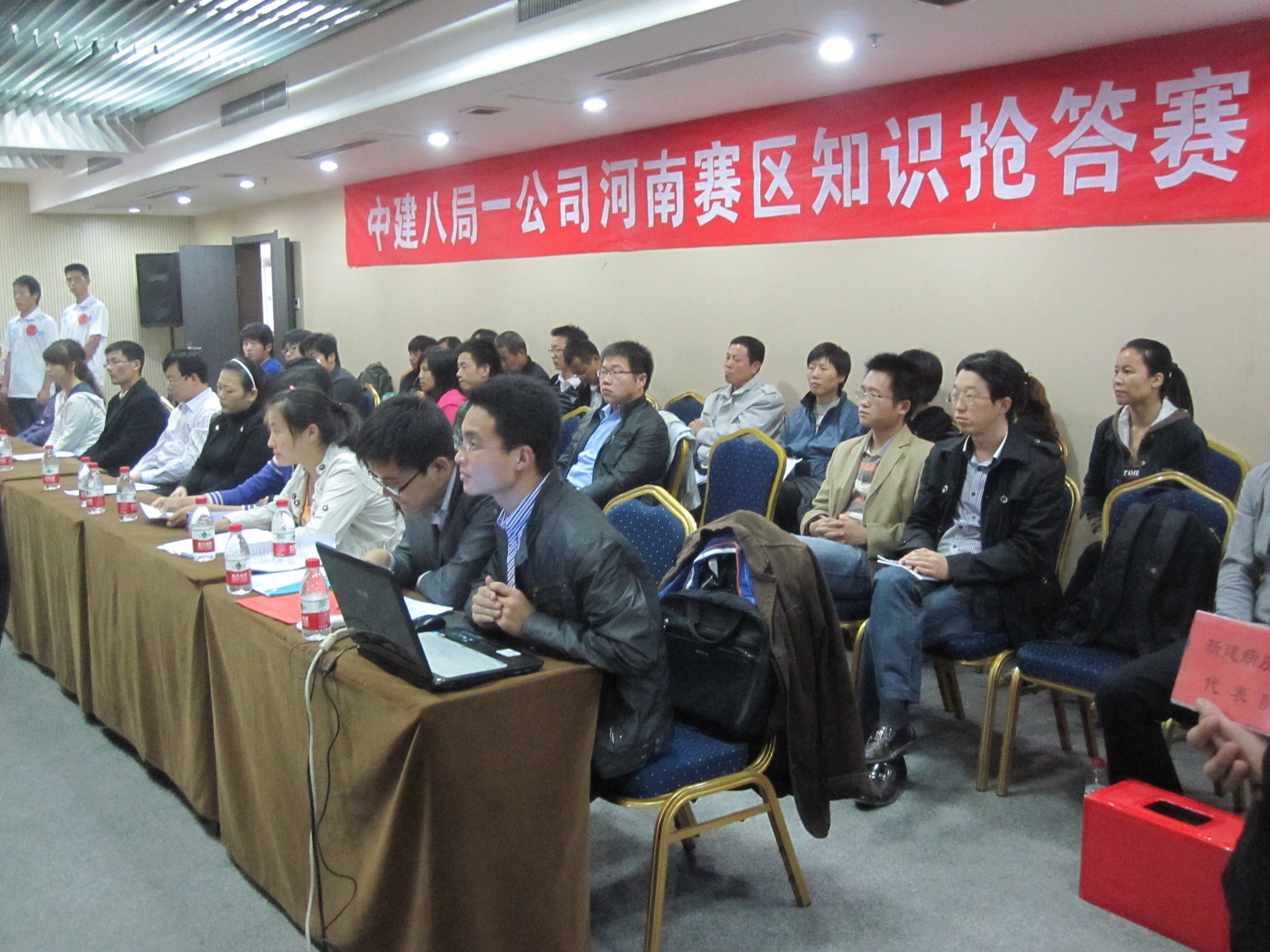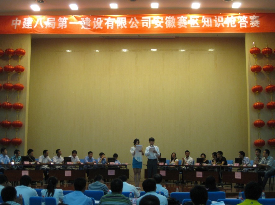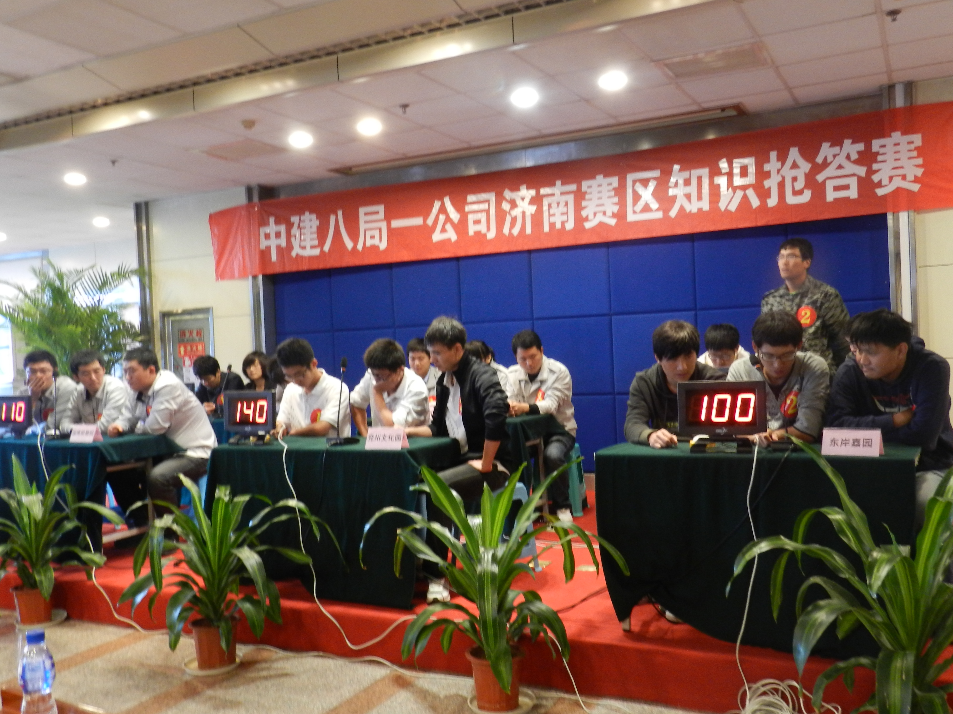 青島分公司、上海分公司、廣東分公司于9月3號率先開賽,北京分公司、河南分公司、安徽分公司、濟南分公司于9月17號同時開賽,各單位領導高度重視,廣東分公司經理、書記均出席了此次活動、北京分公司項目經理均到現場為自己的隊員加油鼓勁,所有參賽隊員及觀眾均統一著裝,體現了對此次活動的重視程度。河南公司制作的知識搶答賽預告片給人耳目一新的感覺;廣東賽區廣東分公司機關代表隊在風險題環節不敵水榭春天代表隊,錯失冠軍;濟南賽區濟南公安局項目代表隊遙遙領先、兗州文化園項目代表隊緊追其后;北京賽區天津中船重工項目代表隊和天津檢疫局代表隊展開了激烈爭奪。安裝分公司、裝飾分公司、基礎設施分公司書記也根據情況出席了分片區比賽現場。活動組委會從各單位準備情況、項目參賽率、錯題率、犯規情況、觀眾人數、主持人主持情況、書面答題等各個方面對各賽區組織工作進行了綜合考評。