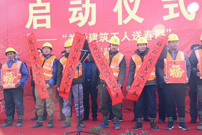 公司暖冬系列活動啟動儀式暨關(guān)愛建筑工人送春聯(lián)活動在濟南中央商務區(qū)安置區(qū)(CBD)項目舉行