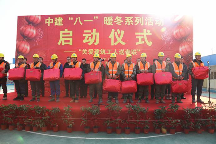 中央商務區(qū)安置區(qū)“關(guān)愛建筑工人送春聯(lián)”活動現(xiàn)場也同時是公司暖冬系列活動的啟動儀式現(xiàn)場,公司黨委副書記、工會主席王有標在儀式上發(fā)表致辭。他表示,以“關(guān)愛建筑工人送春聯(lián)”為“暖冬系列活動”開場,表達了公司對建筑工人的關(guān)心關(guān)愛,是公司關(guān)愛建筑工人、回報社會的又一創(chuàng)新舉措。他表示希望通過本次活動,能夠?qū)⒅薪ā鞍艘弧迸盗谢顒娱_展的有聲有色,能夠在寒冷的冬季為企業(yè)員工、建筑工友們送上一份“家”的溫暖;同時也希望工友們在寒冷的季節(jié)里施工要注意保暖,按要求落實安全防范措施,確保安全生產(chǎn),避免各類安全事故的發(fā)生,爭取高標準完成施工任務。