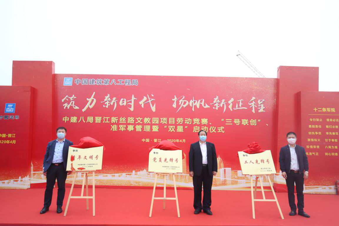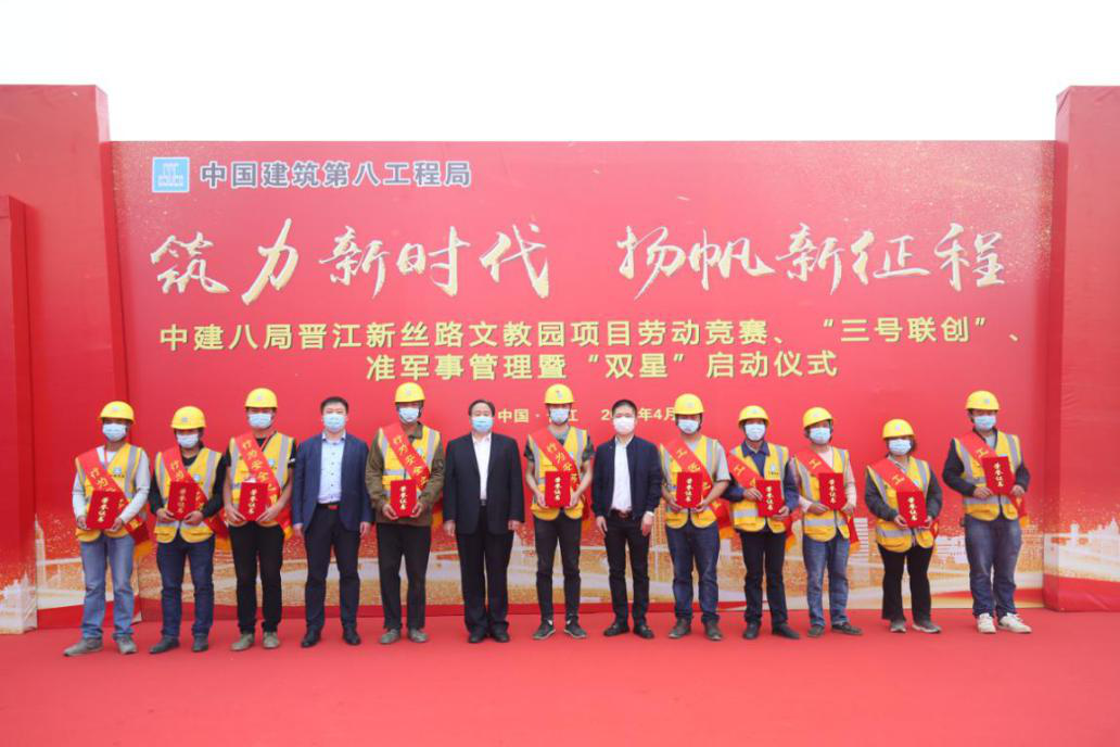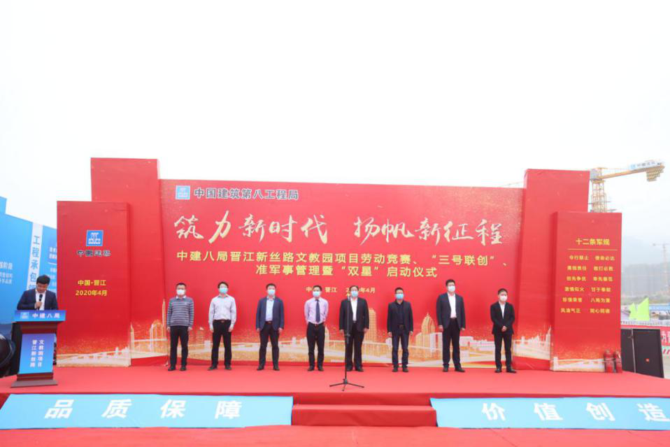 筑力新時(shí)代、揚(yáng)帆新征程——晉江新絲路文教園項(xiàng)目勞動(dòng)競(jìng)賽、“三號(hào)聯(lián)創(chuàng)”、準(zhǔn)軍事管理暨創(chuàng)“雙星”活動(dòng)正式啟動(dòng)