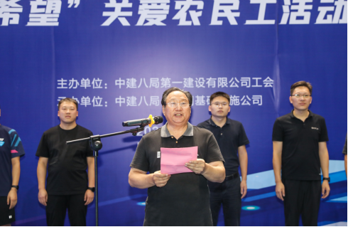 陸家安發(fā)表講話,他指出“文體活動已成為企業(yè)職工生活的重要組成部分,它是企業(yè)綜合實(shí)力和精神文明的重要體現(xiàn),更是促進(jìn)國民經(jīng)濟(jì)和社會發(fā)展的重要動力。中建八局一公司在本次活動中精心籌劃、合理安排,儀式中還融入了展現(xiàn)社會責(zé)任擔(dān)當(dāng)?shù)年P(guān)愛農(nóng)民工活動,向工作在一線的建筑工人送去希望和關(guān)懷,用實(shí)際行動踐行了央企的責(zé)任擔(dān)當(dāng)。”