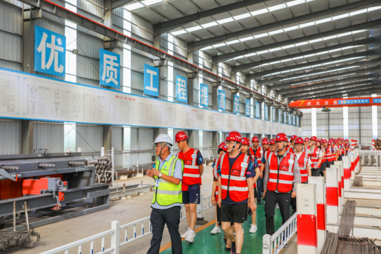 9月5日下午,在緊張的賽事之余,各參賽隊(duì)伍前往位于聊城市的鄭濟(jì)高鐵四分部城東制梁場參觀學(xué)習(xí)。大家參觀了高鐵制梁場“五大功能區(qū),六大服務(wù)區(qū)”,詳細(xì)了解梁從生產(chǎn)到檢驗(yàn)到架設(shè)的流程,感受到了公司基礎(chǔ)設(shè)施管理的實(shí)力。