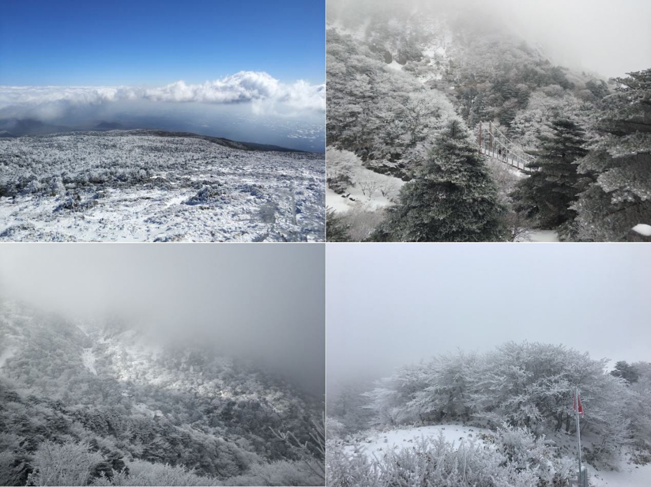 Hallasan Mountain (1950m) is the highest mountain in Korea. As a snow-covered mountain, it is difficult to climb this mountain. Participants were divided into 6 groups and contacted with intercoms between groups. Each group consisted of members from various departments and members of the Consulate, which facilitated their communication in climbing process. In this regard, all persons helped each other and worked together to conquer steep slopes and slides. In spite of slow steps, the climbers made determined efforts and climbed with firm conviction. Soreness and ache did not change their original aspiration. The climbers paid a sweat and also gained a successful harvest. Except that several fellow workers returned due to physical reasons, 31 participants finally succeeded in reaching the peak of Hallasan Mountain with four hours of hard work. Facing chilly wind, they let the banner of the Company unfold and swing in the wind at the top of the mountain.
