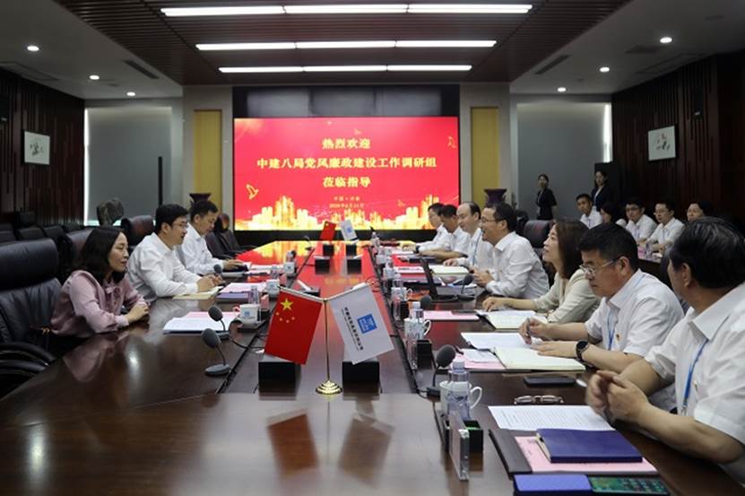 6月11日,中建八局紀委書記趙樹強,局紀委副書記兼紀檢監(jiān)督工作部部長李春,山東分局黨委副書記、紀委書記張繼穎一行蒞臨公司,就黨風廉政建設工作開展專項調研。公司黨委書記、董事長董文祥等領導班子成員、相關部門人員參加。