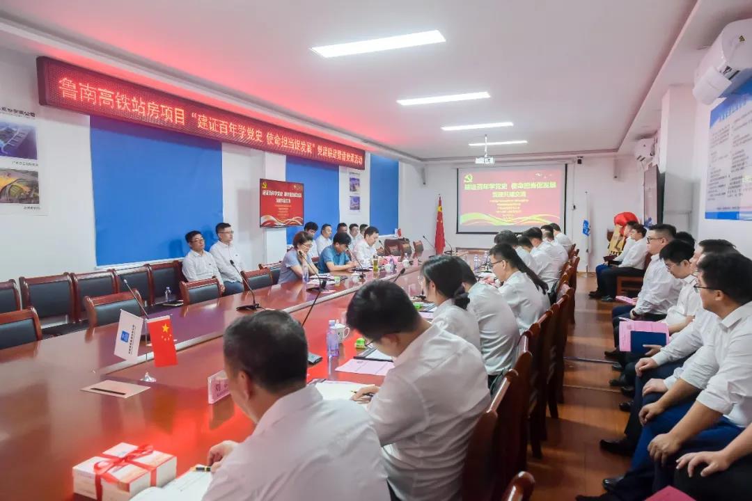 6月8日,魯南高鐵站房項目在項目指揮部開展“建證百年學黨史·使命擔當促發展”黨建聯建暨講黨課活動。